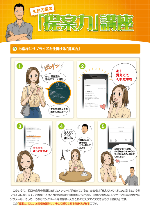 タイムラグを利用した『提案力』は、お客様に「覚えていてくれた!」という感動を与えることができる仕掛けなのです。