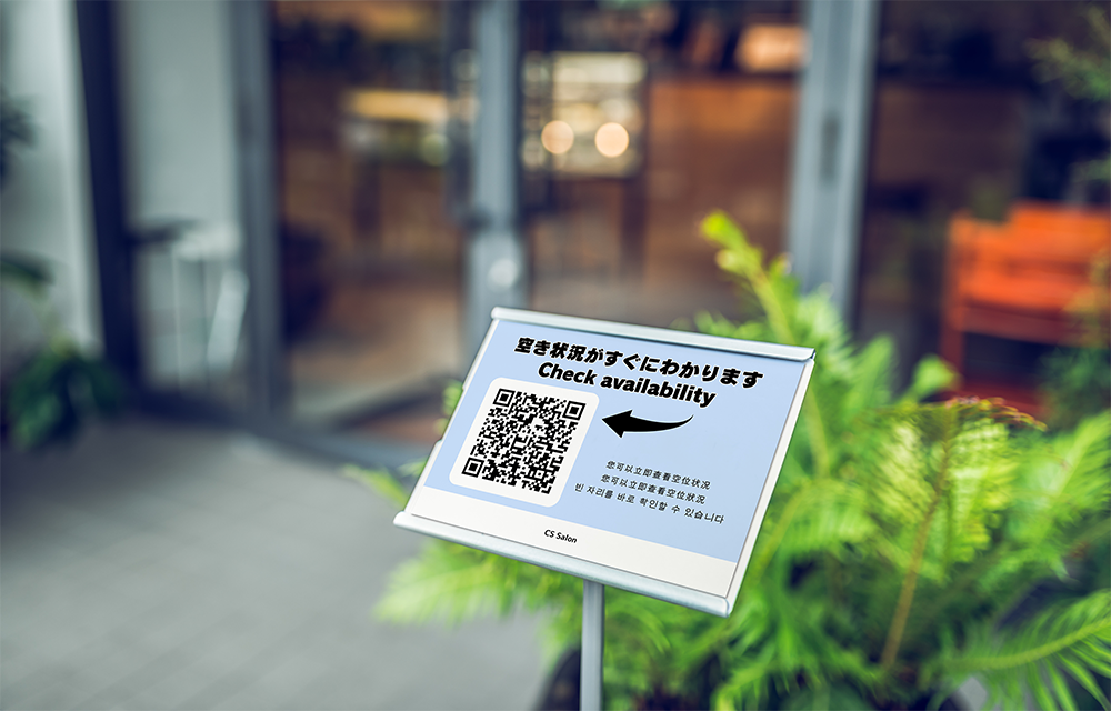 店頭のQRコードから、お客様ご自身でリアルタイムの空き状況を確認できます。